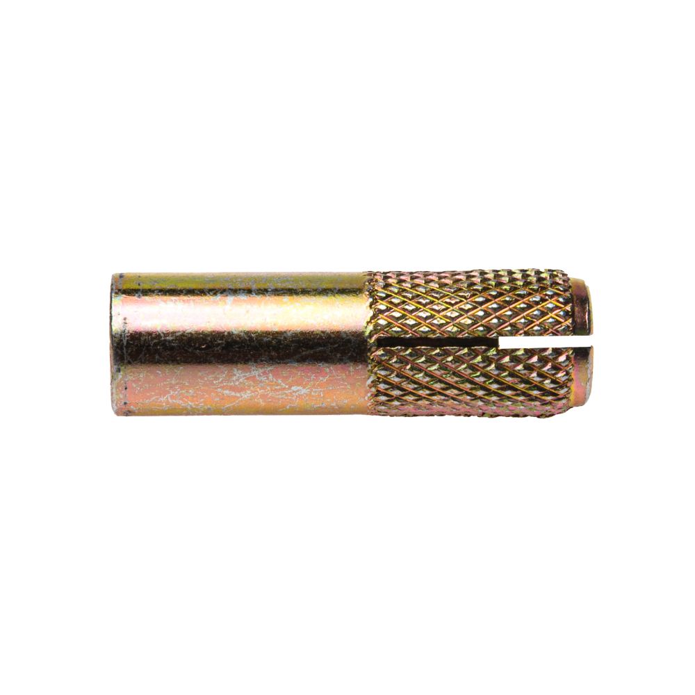 Анкер предназначен для крепления различных строительных конструкций к бетону и полнотелому кирпичу. Представлен в виде стальной гильзы, имеющей внутренний металлический сердечник и резьбу, на внешней поверхности имеется насечка, которая препятствует прокручиванию анкера при монтаже. Предварительно сверлится отверстие, в это отверстие вставляется анкер и расклинивается, путем удара по внутреннему сердечнику. Демонтаж-монтаж не возможен.