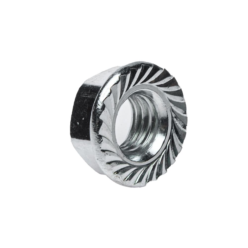 Гайка самоконтрящаяся с фланцем DIN 6923 обеспечивает усиленное соединение и противостоит произвольному раскручиванию при сборке и установке оборудования, изготовлении металлоконструкций, мебели, проведении монтажных работ. Представляет собой шестигранное кольцо, с одной стороны переходящее в круглую шайбу с насечками, которые удерживают крепеж на месте. Изделие применяется вместе с болтами, винтами, шпильками с метрической резьбой.