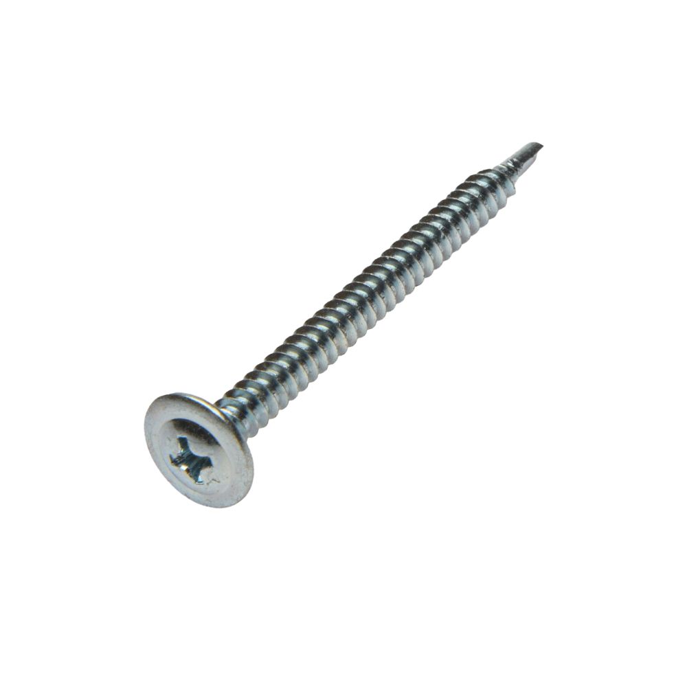 Является одним из самых популярных видов крепежа, предназначен для крепления листового металла к металлическим каркасам и основаниям. Отличительной особенностью самореза является широкая шляпка со шлицом PH2, которая позволяет надежно закрепить тонколистовой материал к строительной конструкции. Наконечник сверло позволяет закреплять разнообразные изделия толщиной до 2мм, без предварительного сверления.